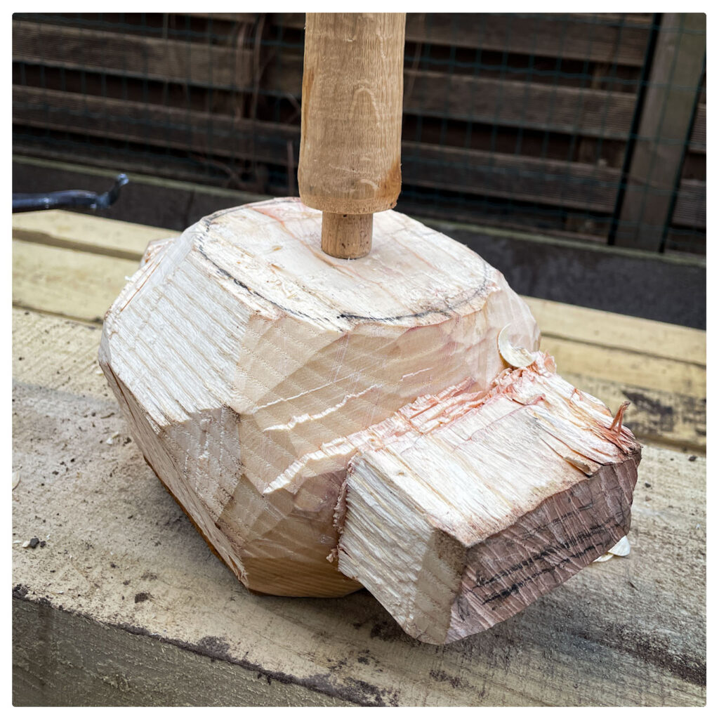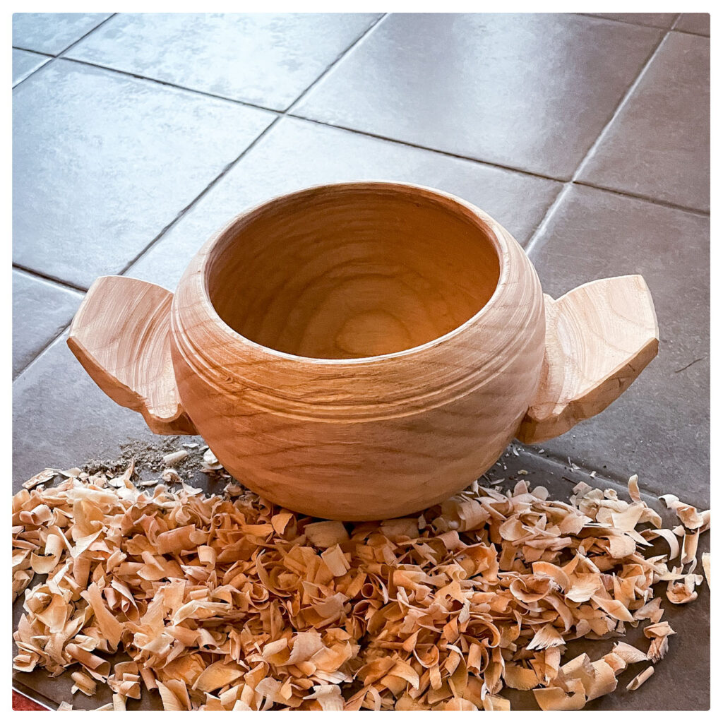 Om het draaiwerk te verkorten hebben, we eerst al een vorm uitgehakt waar de beker mooi inpast. Daarna was het alleen nog een kwestie van alles mooi in vorm draaien 🙂